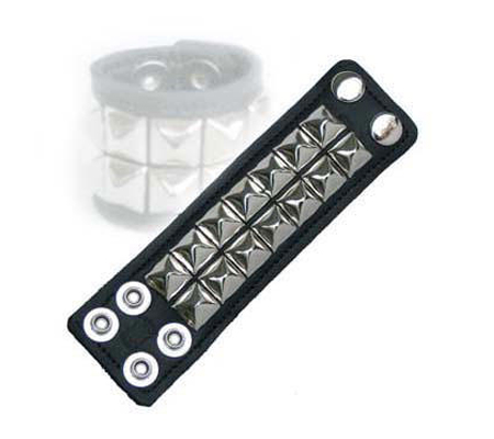 1.5″ wide genuine leather leather ball stretcher with two rows of pyramid studs.