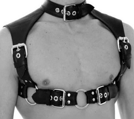 This genuine heavy leather chest body harness offers irresistible control. It features highly adjustable chrome silver buckles at the neck, shoulders, chest and torso. Wide leather shoulders and three big chrome rings in front add to the snug sensuality and excitement.. The leather is fragrant and undeniably appealing. 1-3/16″ wide heavy, soft garment leather straps Three (3) heavy chrome rings Seven (7) fully adjustable leather buckle straps