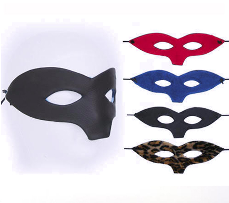 Black leather cat mask with blue, black, red or leopard fleece lining.