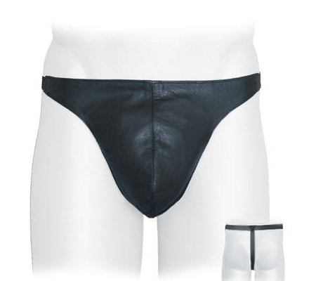 Genuine black leather jock with a g string back. Available in sizes Small/Medium, Medium/Large and Extra Large.
