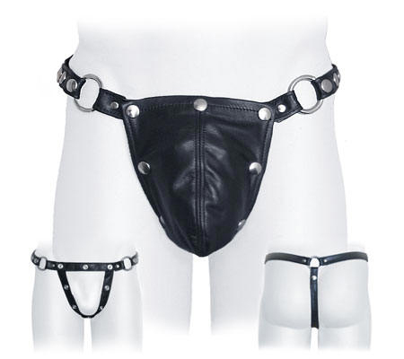 Black leather cod jock with a single back strap. Available in sizes Small/Medium, Medium/Large and Extra Large.