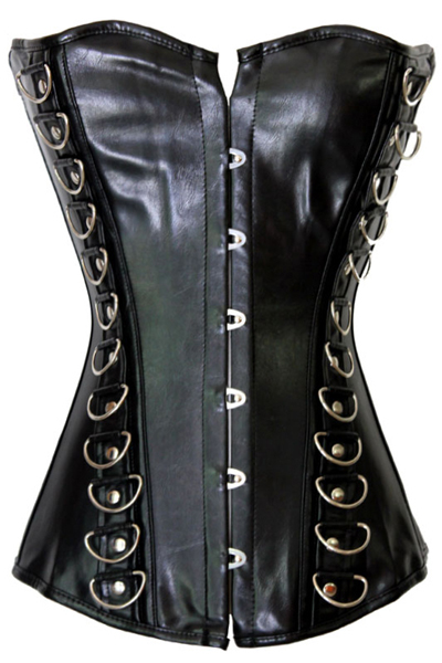 Heavy Duty Double Steel Boned Waist Training Genuine Leather Overbust Tight Shaper Sheep Leather bondage Corset BDSM Woman Corset. Black Leather Overbust Corset featuring bold side D-ring embellishments and a strong front busk closure.