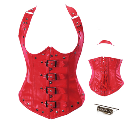 Leather Steel Boned Buckle Cupless Underbust Rivet Corset