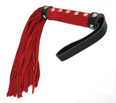 This premium quality red suede flogger whip includes 50 tails and a studded handle. Designed to keep even the most unruly partners under control. A stunning handmade suede flogger whip.