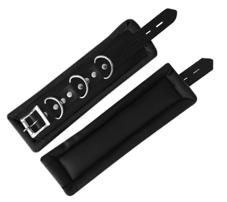 Genuine leather padded bondage restraints with a buckle on which a small padlock can be placed