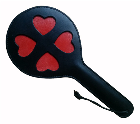 Genuine CowHide Leather Paddle Black Leather Slapper 4 Red Heart Spanking.