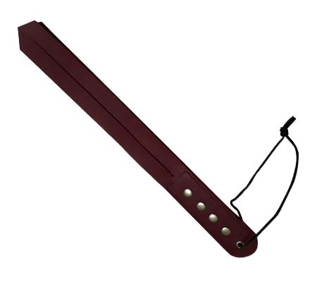 This brown spanking paddle features a luxuriously leather construction with rivet details and an ergonomic hand loop. It’s the perfect addition to your play session, providing a sensuous sensation with every stroke.